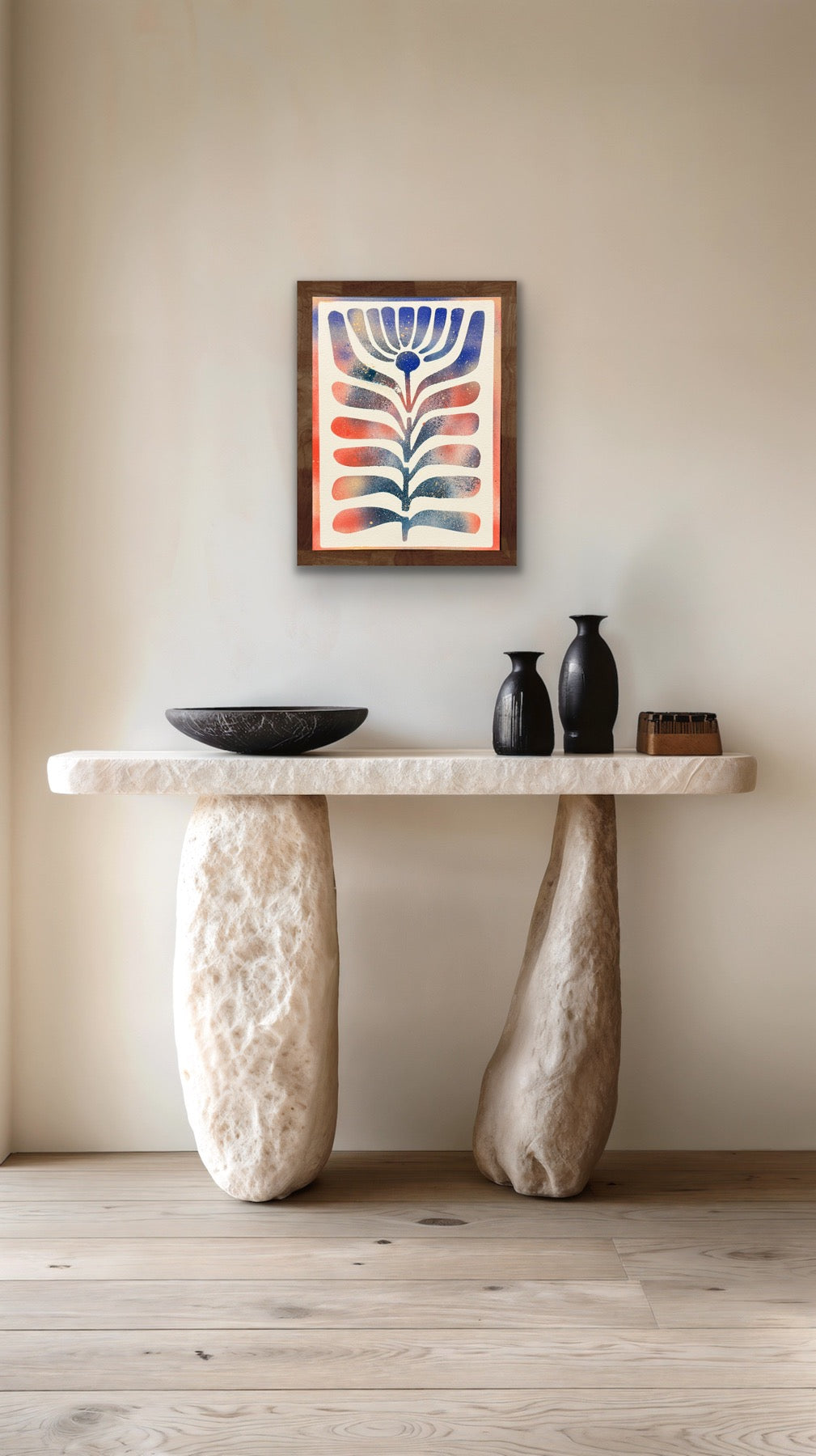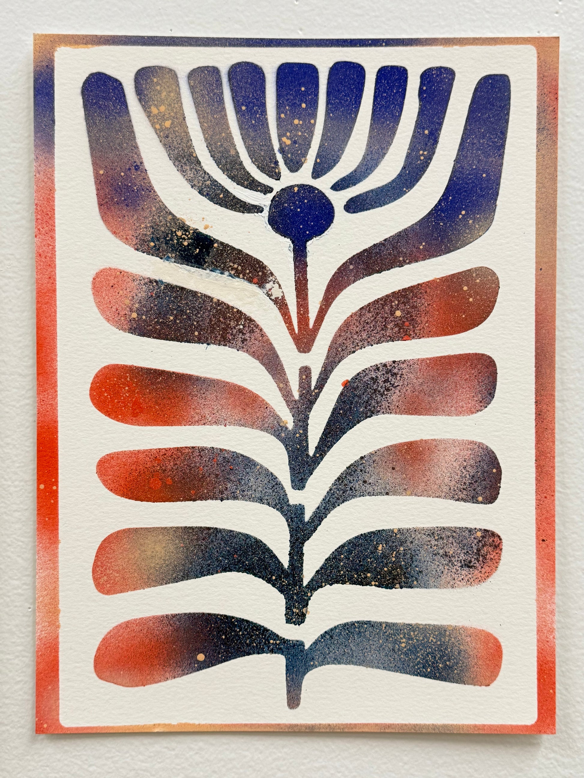 This piece is a part of a series of works created with stencils and bold color. No two are alike!