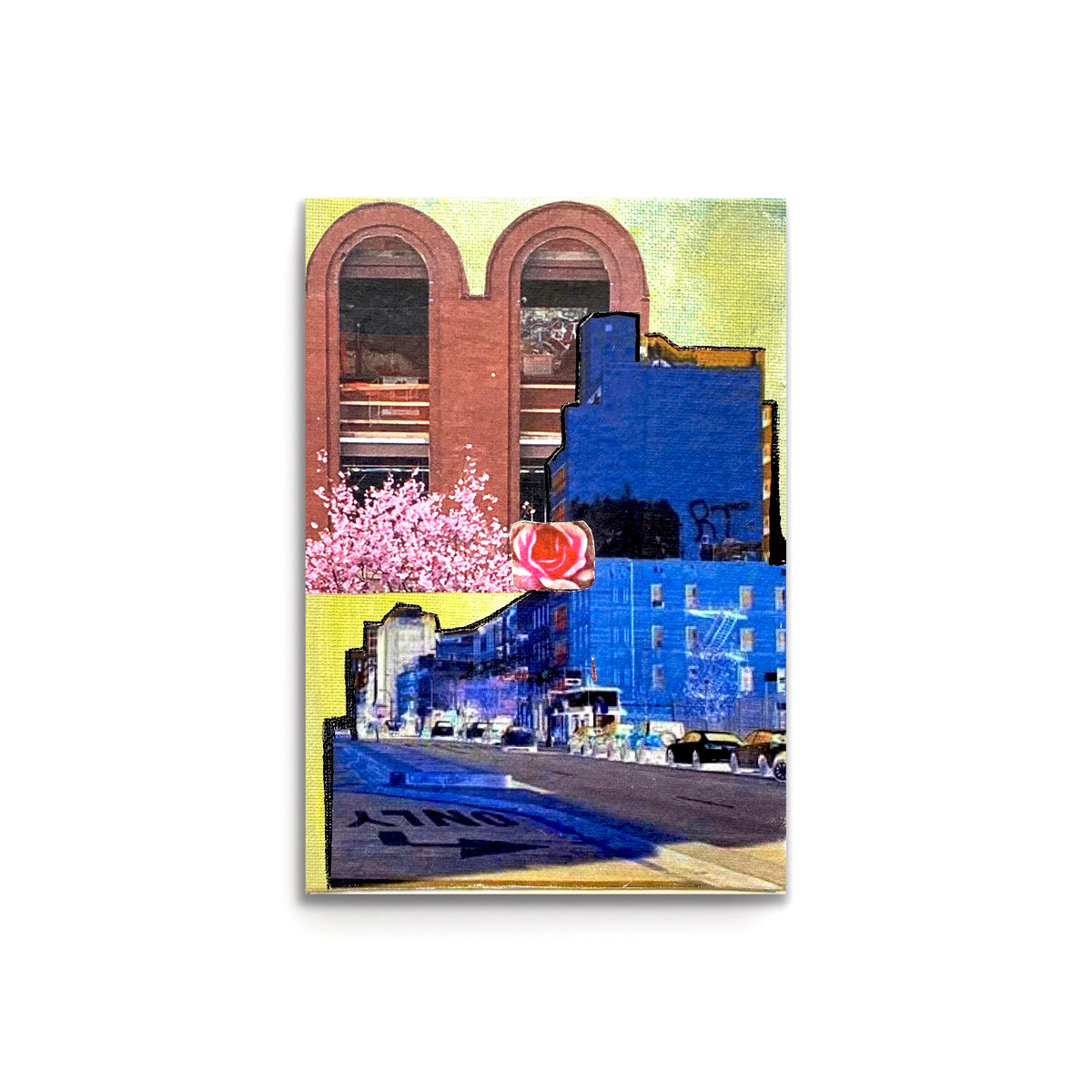 This abstract piece has a few different prints of mine that highlight a couple of different places in the Gowanus area of Brooklyn. The Batcave is now Powerhouse Arts Center. The bottom half of the panel is a print of 4th avenue.