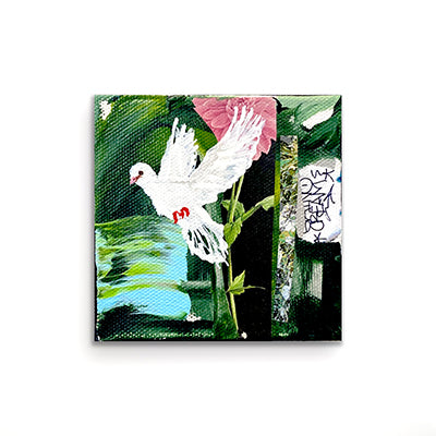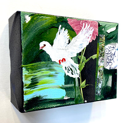 The size is 4x4x1.5" on heavy canvas, signed and ready to hang!